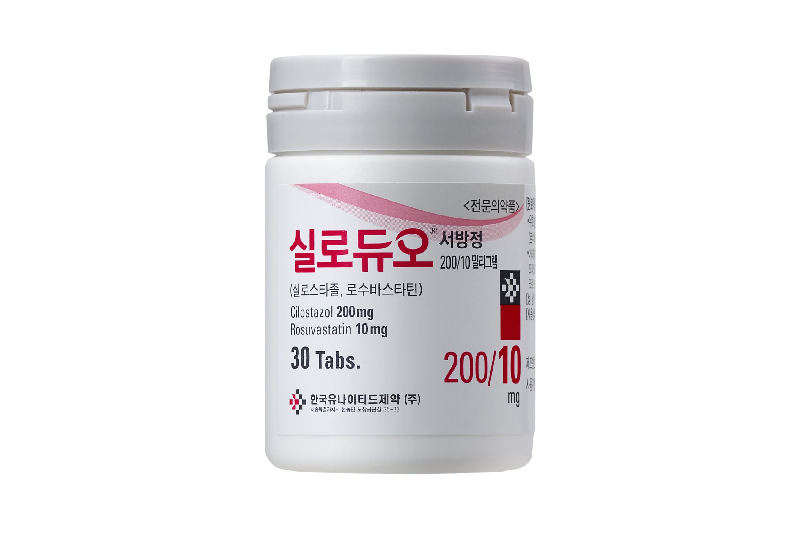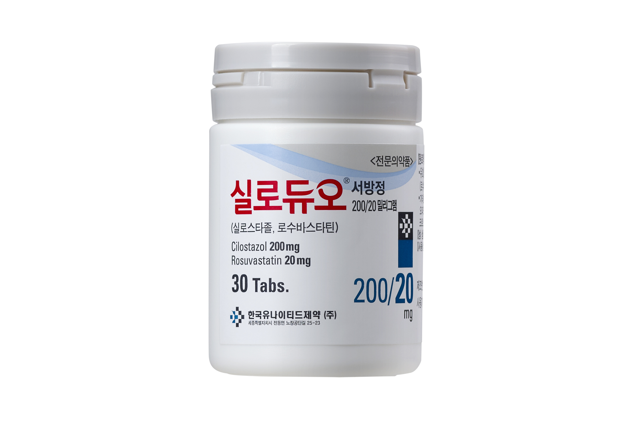 | 특징 | 세계 최초 1일 1정 실로스타졸 + 스타틴 복합제 1.간헐성 파행 개선과 LDL-C 관리를 동시에 수행 2.1일 1회 1정 복용으로 높은 복약 편의성 3.이중 제어방출을 통해 24시간 안정적인 혈중농도 유지 |